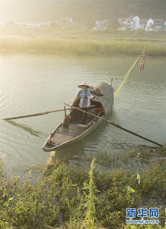 7月18日,渔模邵竹莲配合摄影爱好者进行情景表演。新华社记者翁忻旸摄