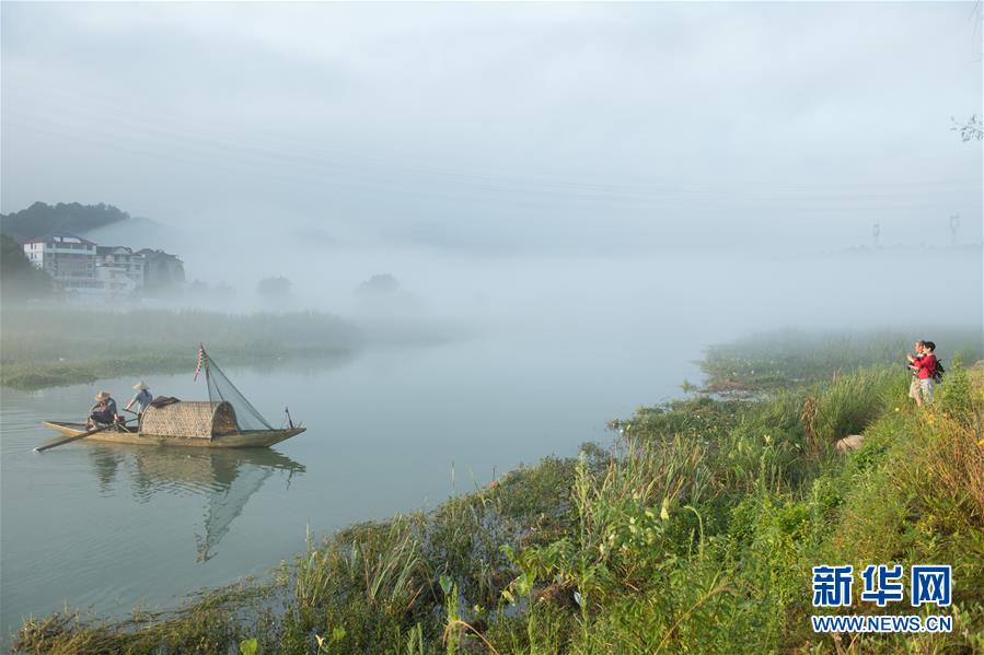 7月18日,摄影爱好者在下涯镇之江村拍摄渔模唐玲珑和邵竹莲的情景表演。新华社记者翁忻旸摄