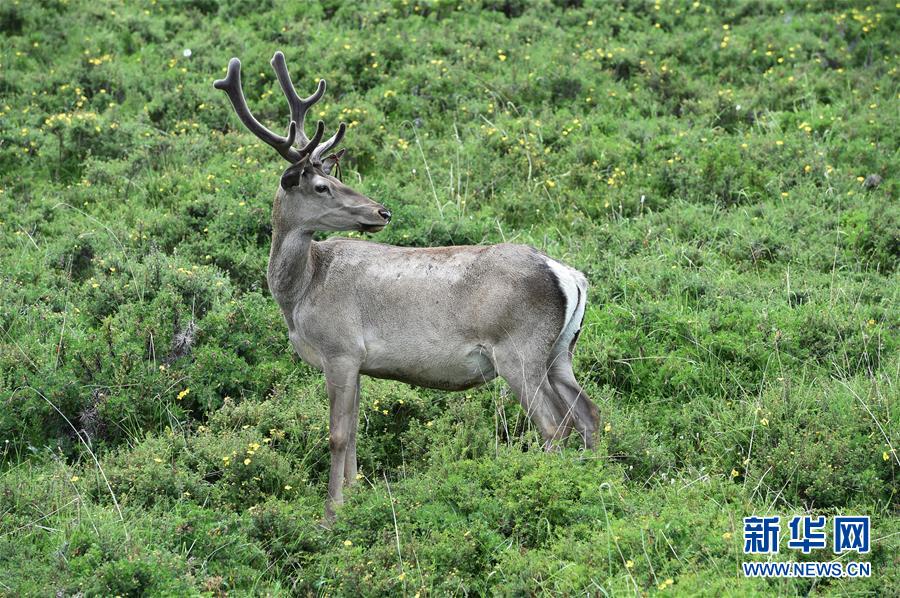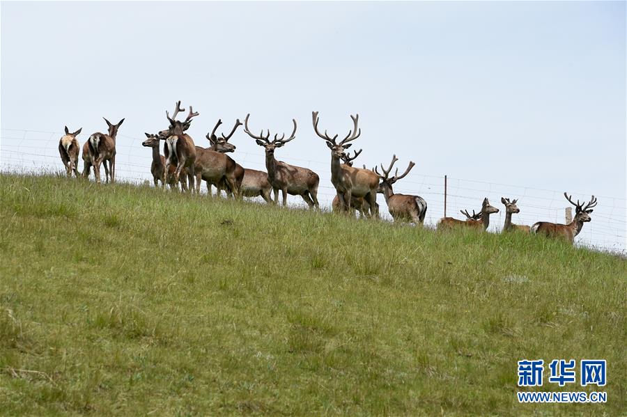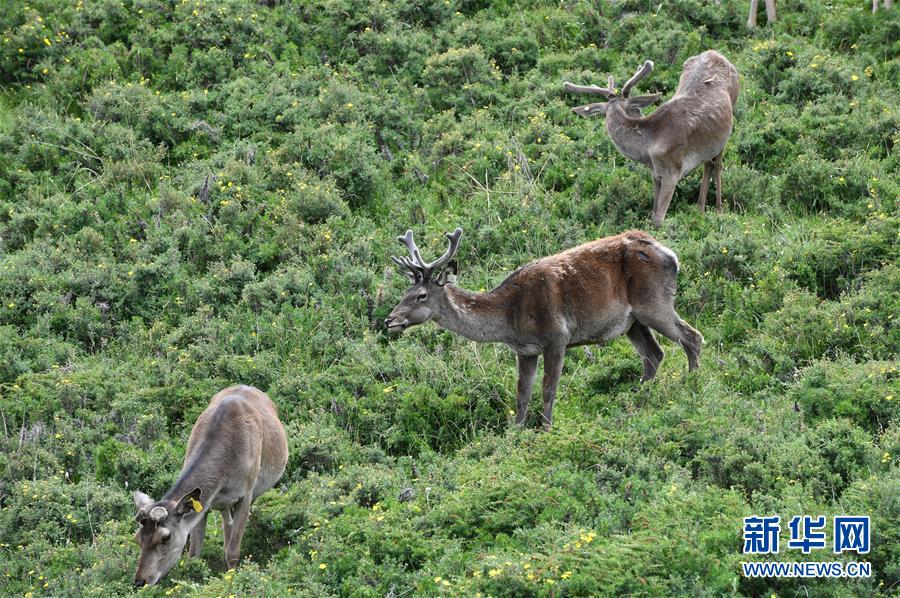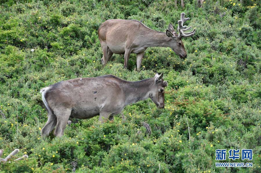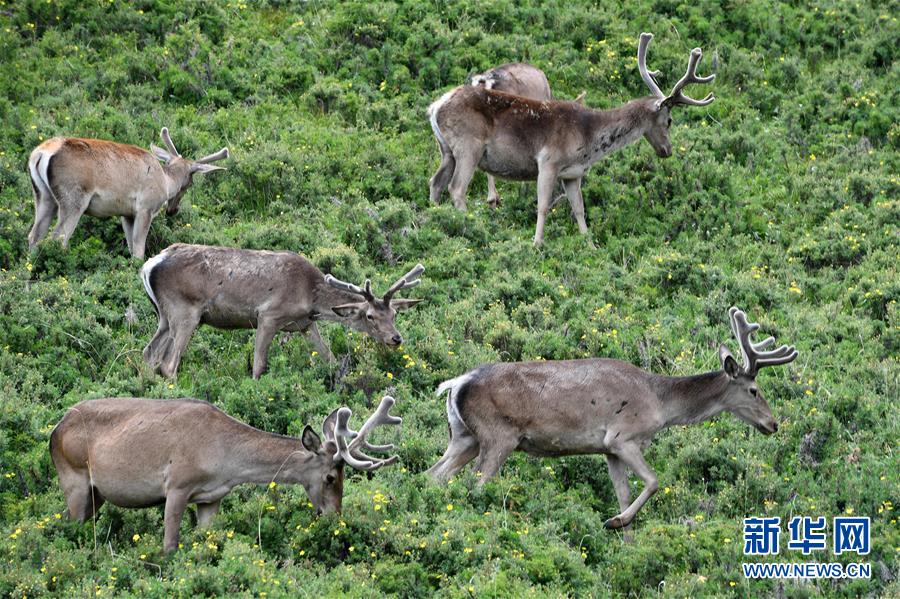 这是在肃南裕固族自治县大河乡境内的草原上拍摄的马鹿(7月20日摄)。新华社记者范培珅摄