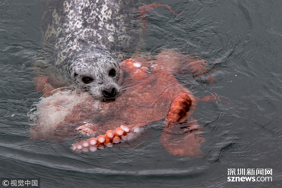 当地时间2015年2月12日,加拿大奥格登角,一只海豹与一只巨大的章鱼死战。这场恶战最终以海豹的胜利而告终。商人Bob Ianson日前在与家人旅行时,意外拍到巨型章鱼与海豹搏斗的全过程。