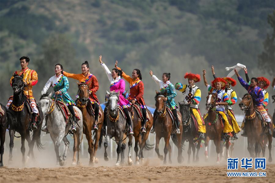 7月15日,西藏队骑手集体向观众致意。当日,在内蒙古呼和浩特市举办的第十一届全国少数民族传统体育运动会马上项目进入第四个比赛日。新华社记者彭源摄