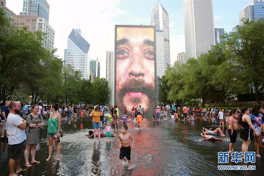 7月5日,人们在美国芝加哥市中心千禧公园的皇冠喷泉游玩。 7月12日是今年“三伏”中“初伏”的第一天,这意味着高温高湿的“桑拿天”将逐渐成为天气“主角”,我国大部分地区开启“蒸煮模式”或“烧烤模式”。 而近日北半球多地也处在高温酷暑中。 新华社记者 汪平 摄