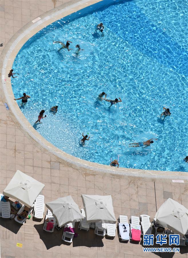 7月9日,人们在土耳其伊斯坦布尔一个室外游泳池消暑度夏。 7月12日是今年“三伏”中“初伏”的第一天,这意味着高温高湿的“桑拿天”将逐渐成为天气“主角”,我国大部分地区开启“蒸煮模式”或“烧烤模式”。 而近日北半球多地也处在高温酷暑中。 新华社记者 徐速绘 摄