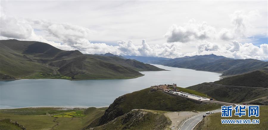 俯瞰羊卓雍错(7月22日摄)。羊卓雍错简称羊湖,位于西藏山南市浪卡子县境内。7月,西藏进入雨季,羊卓雍错降雨丰富,自然景色壮丽奇美。新华社记者晋美多吉摄