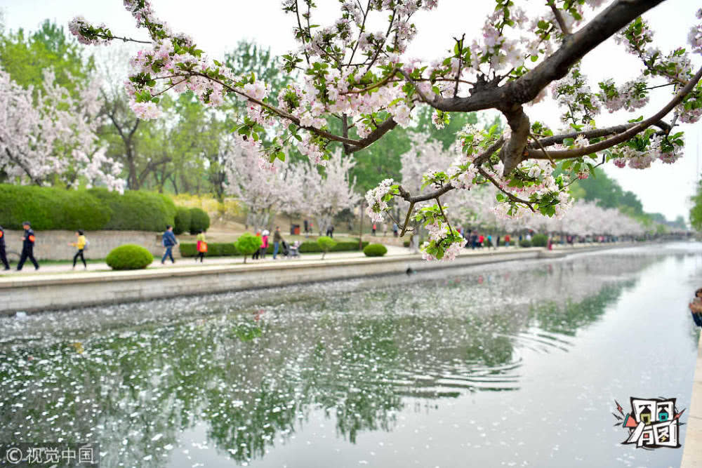 【北京海棠花溪元大都城垣遗址上的海棠林】海棠花溪,位于元大都城垣遗址公园内,是北京城区内最大的海棠林,品种诸多,久负盛名,是该公园的一张名片。每逢微风吹过,片片海棠如雪花一般飘落水面,不知不觉形成人在花中,花在水中的别样美景。