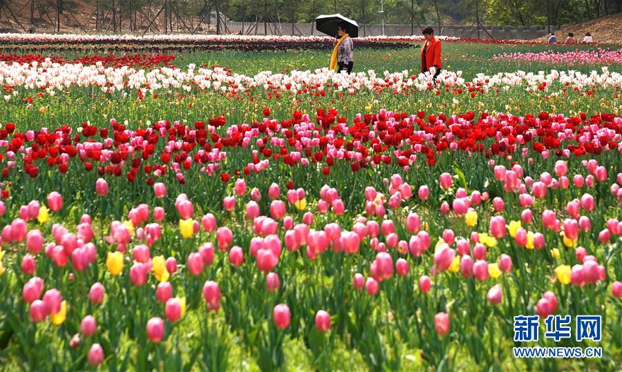 4月14日,游客在位于湖北省十堰市茅箭区的秦巴生态植物园内赏花游览。近日,位于湖北省十堰市茅箭区的秦巴生态植物园内,200万株郁金香竞相开放,吸引游客前来赏花游览。 新华社记者 程敏 摄