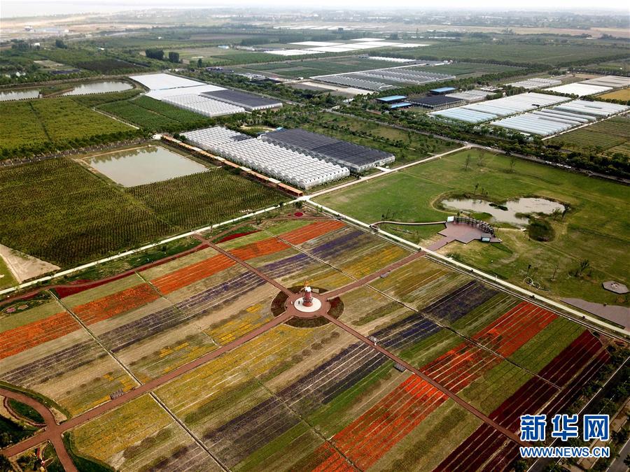 这是包河区牛角大圩四季花海和玫瑰种植园(5月9日无人机拍摄)。 近年来,安徽省合肥市包河区深度挖掘生态休闲旅游资源,结合美丽乡村建设,对村域旅游资源、生态环境、基础设施等进行优化提升,吸引游客前来赏景度假。 新华社记者 刘军喜 摄