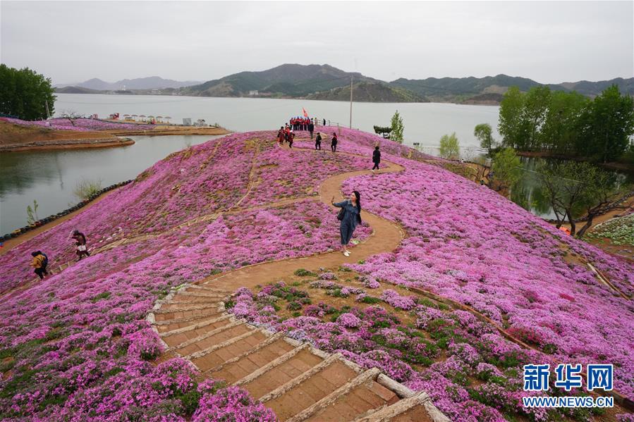 4月24日,游人在雨花谷景区游览。近日,河北省迁西县雨花谷景区的芝樱花盛开,吸引游客前来观赏。 新华社记者 杨世尧 摄