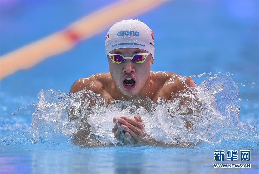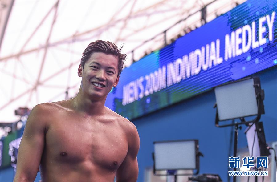 7月24日,汪顺在比赛中。当日,在韩国光州举行的2019国际泳联世界游泳锦标赛男子200米个人混合泳预赛中,中国选手汪顺以1分59秒18的成绩位列第11名,晋级半决赛。新华社记者夏一方摄