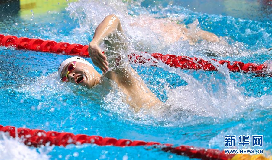 7月22日,中国选手孙杨在比赛中。当日,在韩国光州举行的2019国际泳联游泳世锦赛男子200米自由泳预赛中,中国选手孙杨以1分46秒22的成绩获得预赛第二名,晋级半决赛。新华社记者李钢摄