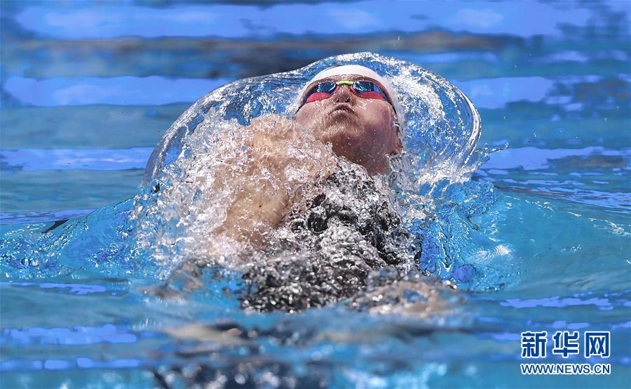 7月22日,徐嘉余在比赛中。当日,在韩国光州举行的2019国际泳联世界游泳锦标赛男子100米仰泳预赛中,中国选手徐嘉余以52秒85的成绩位列第一名,晋级半决赛。新华社记者李钢摄