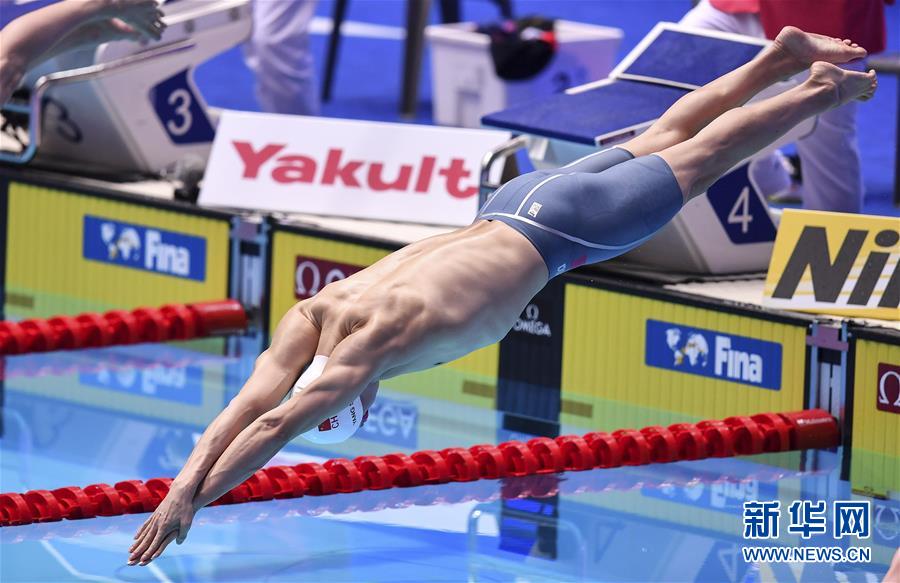 7月23日,孙杨在比赛中入水。当日,在韩国光州举行的2019国际泳联世界游泳锦标赛男子200米自由泳决赛中,中国选手孙杨以1分44秒93的成绩获得冠军。新华社记者夏一方摄