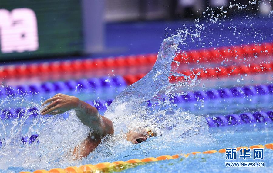 7月23日,孙杨在比赛中。当日,在韩国光州举行的2019国际泳联世界游泳锦标赛男子200米自由泳决赛中,中国选手孙杨以1分44秒93的成绩获得冠军。新华社记者夏一方摄