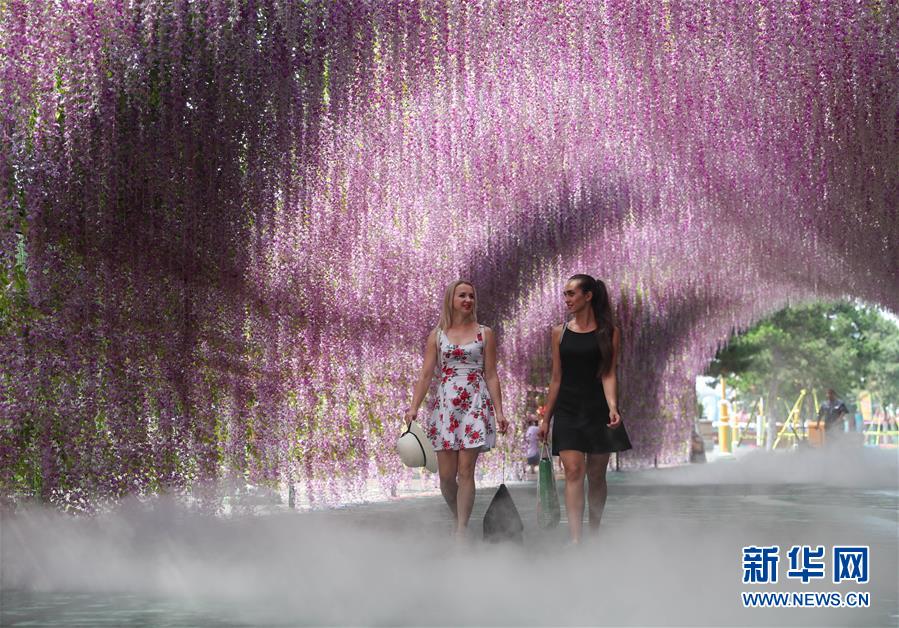 7月31日,列娜(左)结束表演后与同伴返回宿舍。新华社记者龙雷摄