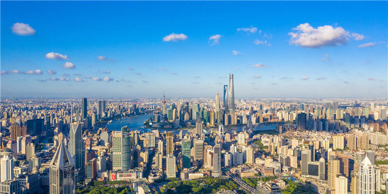 2019年8月1日,上海,当日城区碧空万里,白云朵朵,再现“水晶天”。下自成蹊/视觉中国