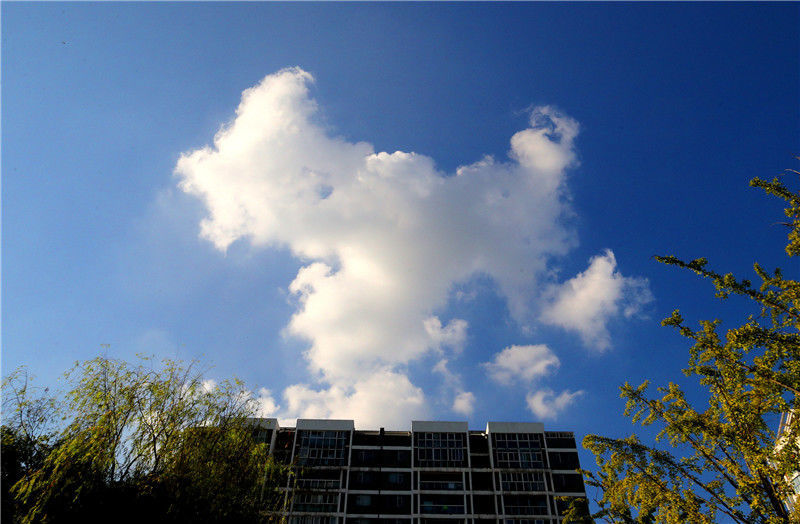 2019年8月1日,苏州市领秀江南小区上空飘动着赏心悦目的撩人云朵。王建中/视觉中国