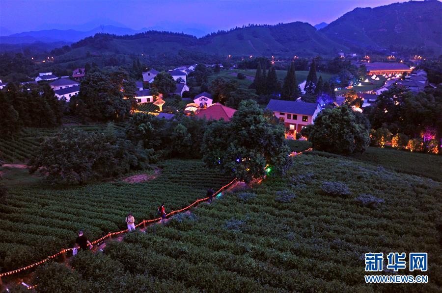 浙江省安吉县灵峰街道剑山村蔓塘里自然村的“大地之光”艺术光影秀(7月20日摄)。新华社记者 谭进 摄