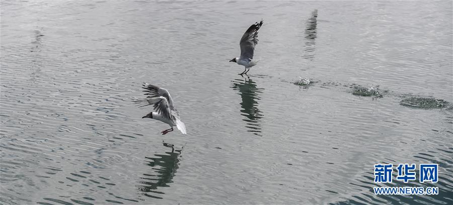 班公湖上飞翔的棕头鸥(8月3日摄)。 班公湖位于西藏阿里地区日土县西部,湖面平均海拔4200米,湖中有数个岛屿,每年有数万只鸟到湖上的小岛上栖息繁殖。 新华社记者 晋美多吉 摄