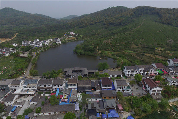 2016年04月15日,江苏省南京市,江宁黄龙岘村民宿群旁的一个池塘,从高空俯瞰下去,宛如一颗心的形状,吸引了大批游客前来观赏。