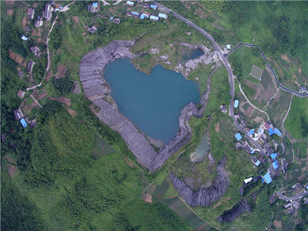 2018年5月23日,重庆,鸟瞰巨型心形水坑。