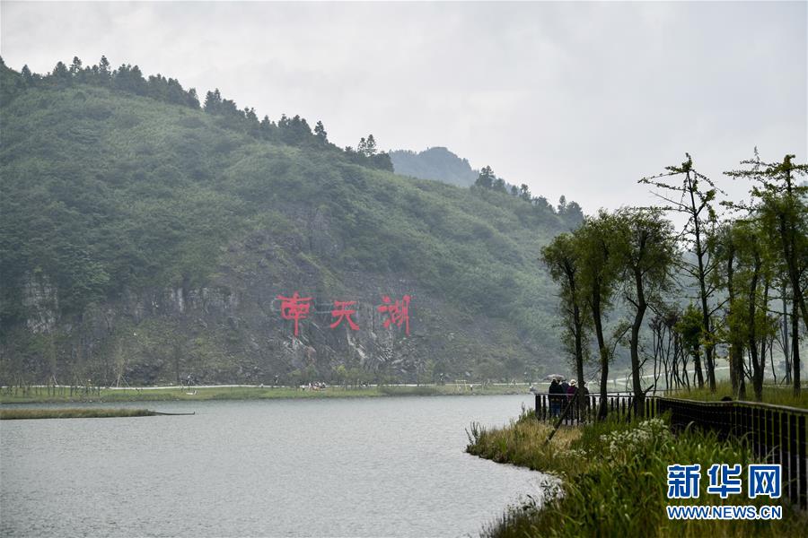 重庆丰都县南天湖景区的环湖步行道上,游客们在游览参观(8月6日摄)。 新华社记者 刘潺 摄