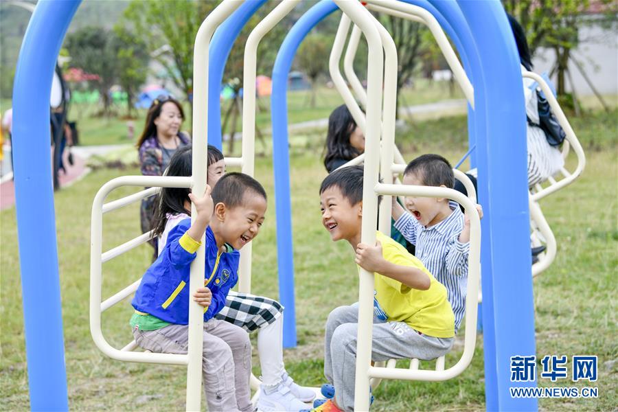 重庆丰都县南天湖景区内,几名小朋友在游乐设施上尽情玩耍(8月6日摄)。 新华社记者 刘潺 摄