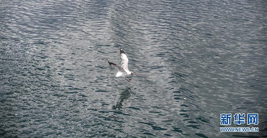 班公湖上嬉戏的棕头鸥(8月3日摄)。  新华社记者 晋美多吉 摄