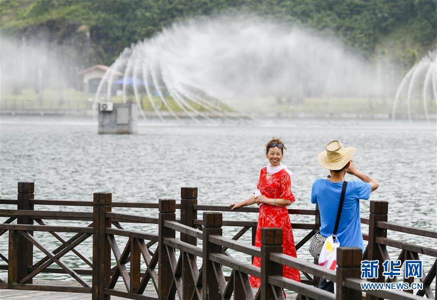 重庆丰都县南天湖景区内,游客在拍照留念(8月6日摄)。 新华社记者 刘潺 摄