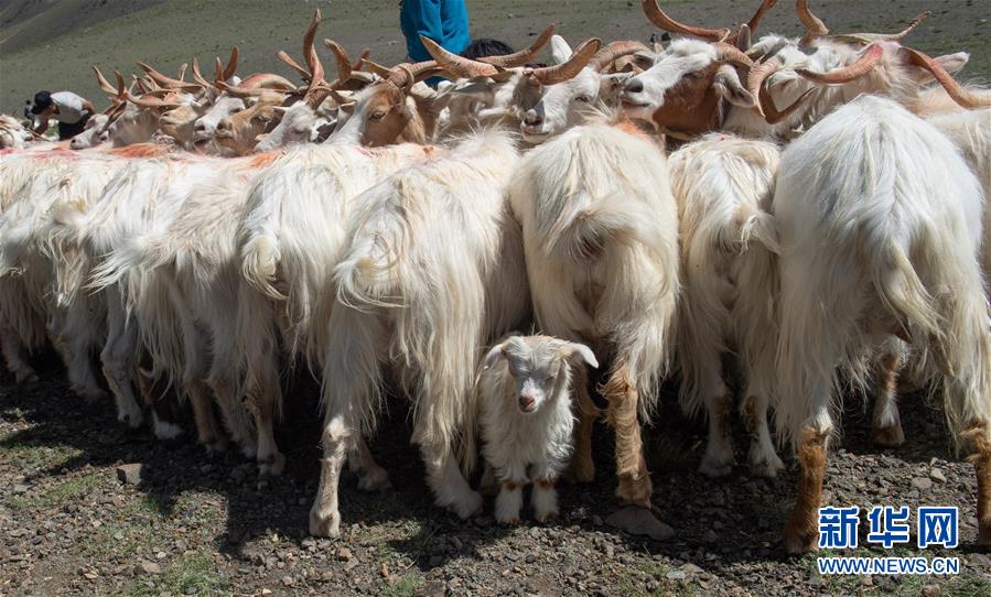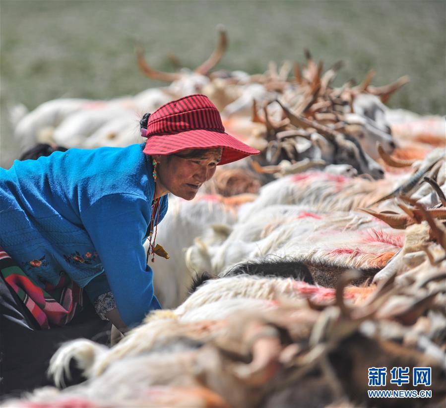 牧民赶着牛羊转场到夏季牧场,安顿妥当后的第一个工作就是给羊剪羊毛(6月7日摄)。新华社记者丁磊摄