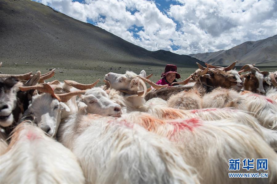 在西藏阿里地区日土县多玛乡帕珠贡玛牧业点,牧民们将几百只羊“集结”起来,准备挤奶(8月4日摄)。
