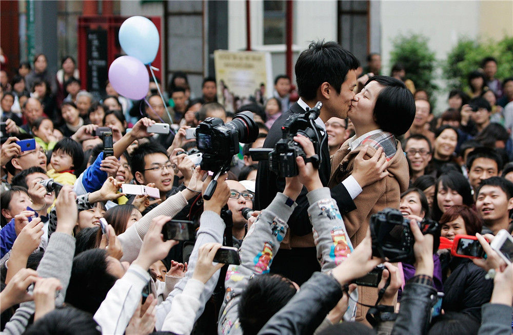 2011年11月19日,四川省成都市东区音乐公园,一男子组织近百个亲朋好友,对女友进行“突袭”,在现场表演手语舞向女友求婚,获得成功。成都商报/视觉中国