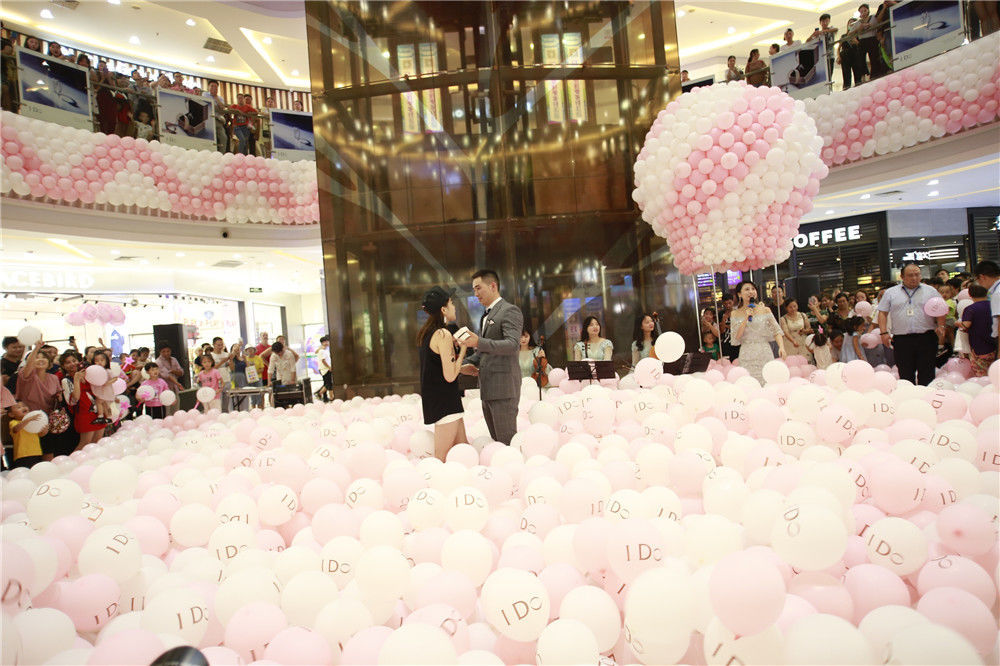 2018年8月17日,湖北宜昌一小伙儿在万达广场现场上演浪漫的求婚仪式,引来众多市民驻足围观。周建平/视觉中国