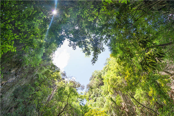 2018年8月3日,泰国普吉岛,攀牙湾的一座小海岛中心上空的森林,把天空围成一个心形,让人不由得感叹大自然的鬼斧神工。金翰昕/视觉中国
