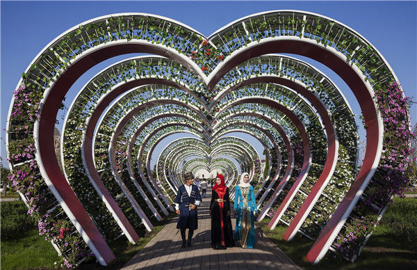 当地时间2017年9月17日,俄罗斯车臣共和国,车臣共和国首府格罗兹尼市区出现了一个爱心形状的花卉园,庆祝“妇女日”。