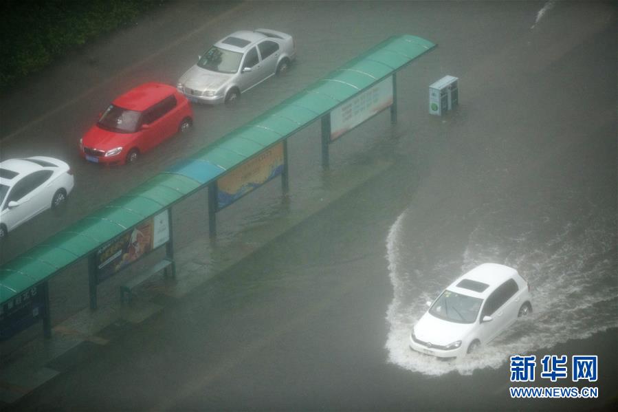 8月10日,车辆在宁波市北仑区积水路段前行。 今年第9号台风“利奇马”已于8月10日1时45分前后在浙江省温岭市城南镇登陆,登陆时强度为超强台风级,中心附近最大风力16级,相当于52米/秒,中心最低气压930百帕。“利奇马”登陆后,浙江大部分地区有大雨暴雨,浙东沿海局部地区有特大暴雨。 新华社记者翁忻旸摄