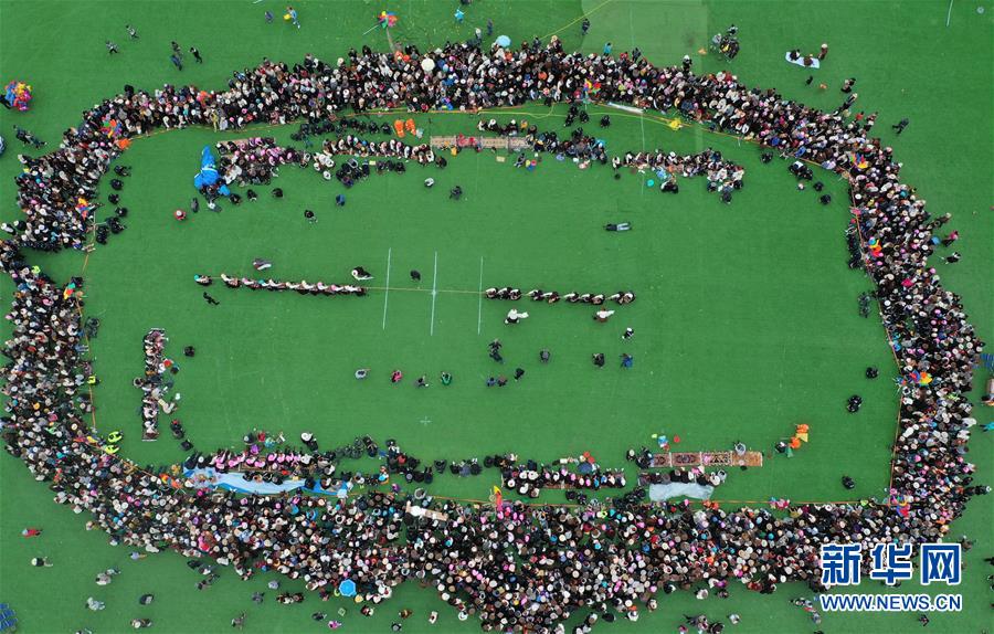 8月9日,西藏当雄县举行竞争激烈的民间传统拔河比赛(无人机拍摄)。 当天,西藏当雄县海拔4300米的赛马场举行激烈的民间传统拔河比赛,来自当雄县各乡镇的牧民妇女盛装参加拔河比赛,场面喜庆而热闹。 新华社记者 王建华 摄