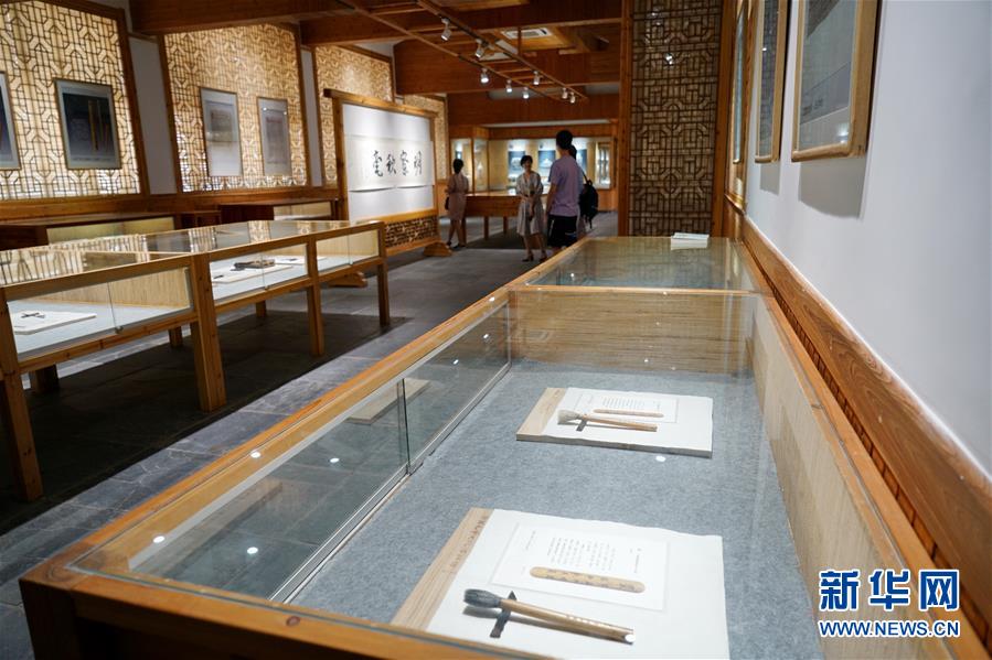 8月8日,游客在位于文港镇的中国毛笔文化博物馆内参观。 新华社记者 牟宇 摄