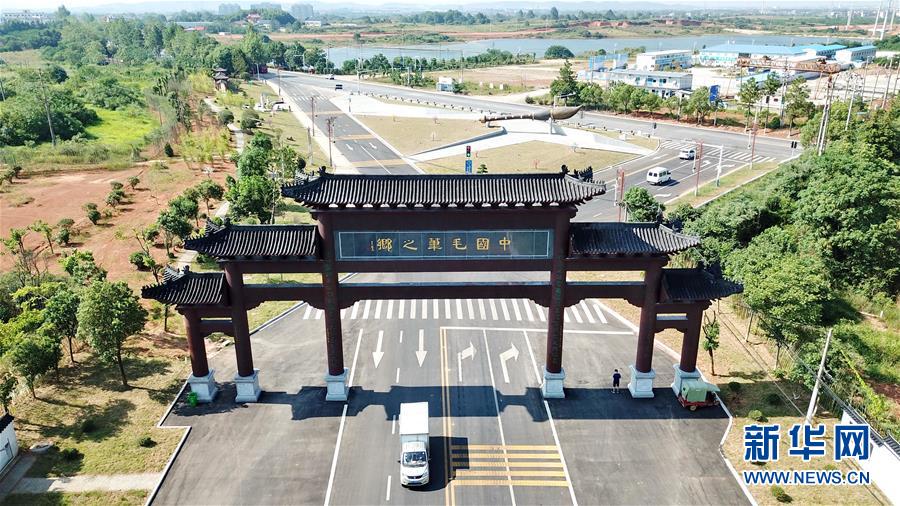 这是8月8日无人机拍摄的文港镇一处毛笔文化特色建筑。 新华社记者 牟宇 摄
