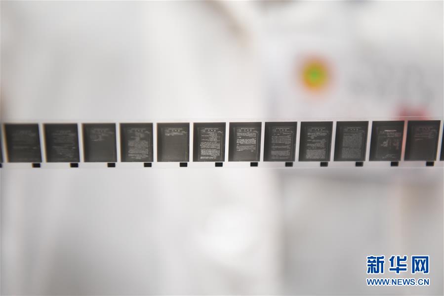 8月6日,中南大学湘雅医院病案管理与信息统计中心的工作人员在展示以微缩卷片形式保存的胶片病历。 新华社记者 薛宇舸 摄