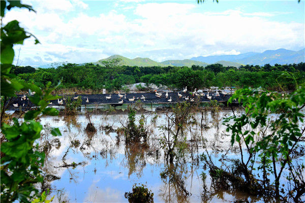 2019年8月11日,浙江台州,被台风冲毁的养鹅大棚。