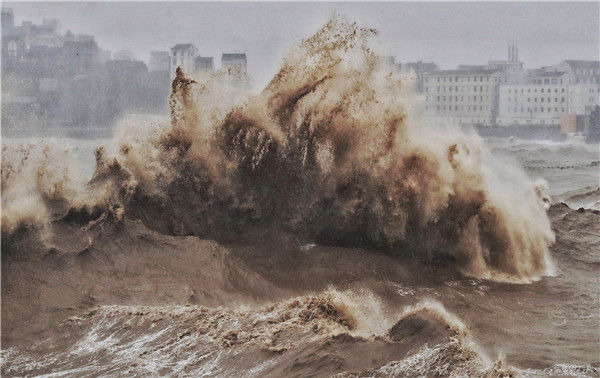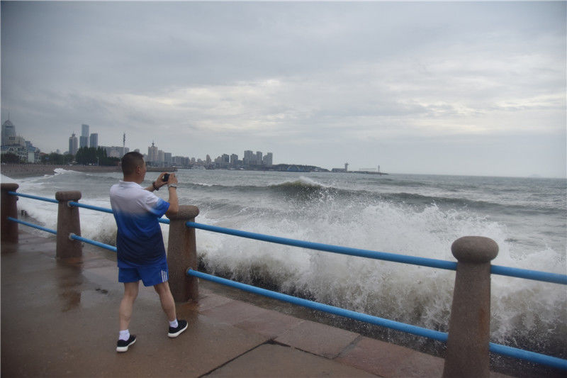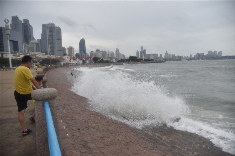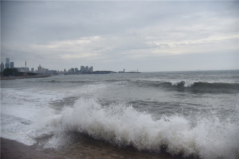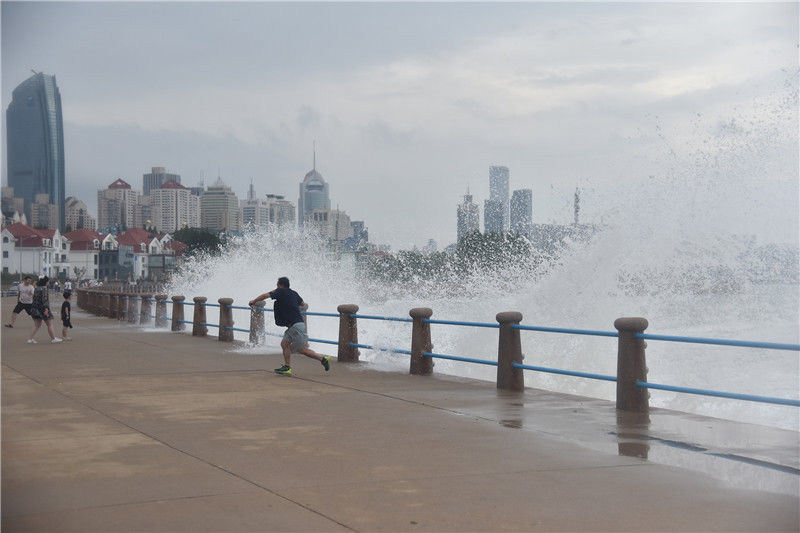 2019年8月10日,受今年第9号台风“利奇马”的影响,青岛海边掀起大浪。
