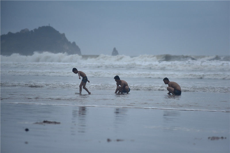 2019年8月9日,浙江台州,石塘金沙滩浴场,受台风影响,海浪滔天。