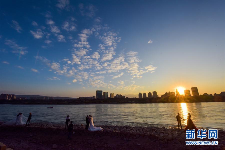 新人们在云南省景洪市澜沧江边拍婚纱照(2018年11月29日摄)。 新华社记者江文耀摄