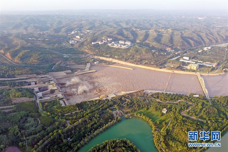 这是7月25日拍摄的小浪底水利枢纽(无人机拍摄)。新华社记者 李嘉南 摄