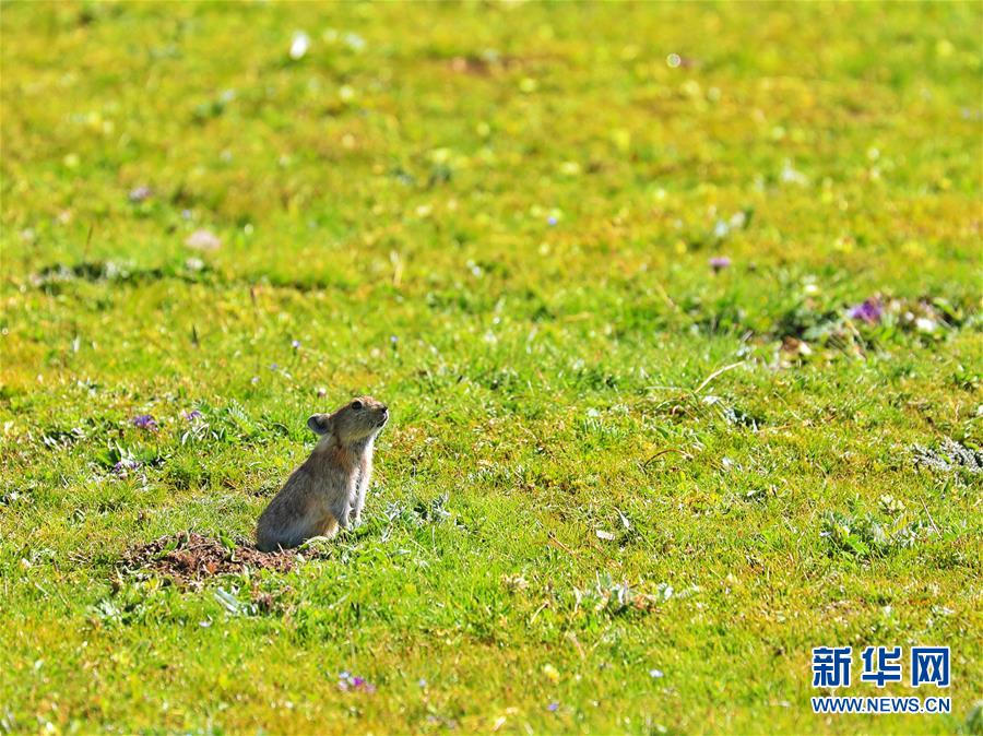 一只“呆萌”的高原鼠兔(8月14日摄)。 8月12日至14日,来自全国各地的31名自然爱好者聚集在海拔4200米的青海省玉树藏族自治州称多县嘉塘草原,参加“2019嘉塘自然观察节”。自然爱好者用独特视角记录珍稀野生动植物,观察三江源生态。 新华社记者 田文杰 摄