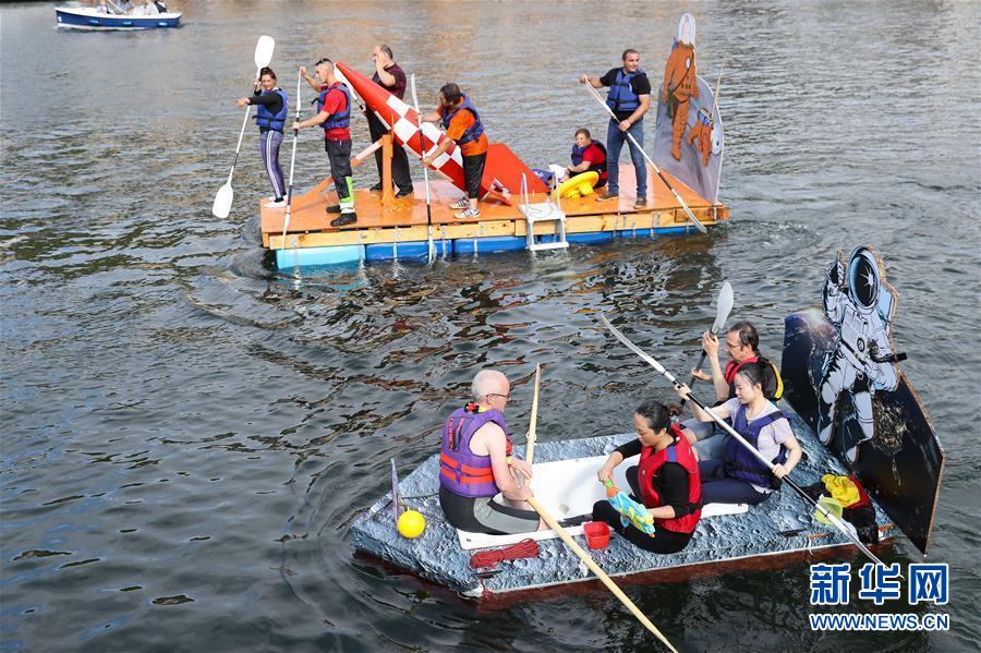 当日,一年一度的水上狂欢活动“浴缸划船节”在比利时迪南举行。该活动要求参赛者制造的船上至少带有一个浴缸,参赛者需完成一千米的水上巡游,最后根据设计创意及现场表演而非行进速度评选出优胜者。“浴缸划船节”始于1982年,今年的主题是"我们在月球漫步"。 新华社记者 张铖 摄