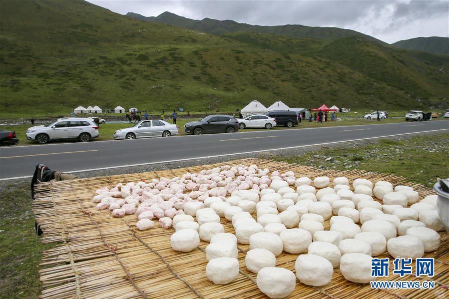 牧民把手工制作的奶疙瘩摆放在门前,向来往的游客出售(8月17日摄)。 新疆独库公路为国道217线独山子——库车段,纵贯天山南北,串联冰川、湖泊、森林、草原等多种景观形态,牧民毡房遍布沿线,牛羊散落在高低起伏的草场上,兼具自然与人文之美,成为自驾游客、骑行徒步爱好者在新疆旅游的热门线路之一。 近日,阴雨绵绵,天山山脉被云雾环绕,独库公路展现出不一样的美,令游客流连忘返。 新华社记者 李鹏 摄