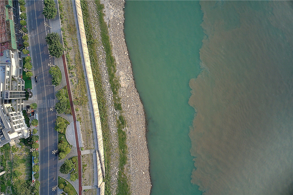 洮河是黄河上游的重要支流,流经陇西黄土高原时裹挟了大量泥沙,较为浑浊,在甘肃省永靖县汇入黄河刘家峡水库时,与库区中清澈的黄河水对比强烈,形成“半江碧水半江浑”的景观。