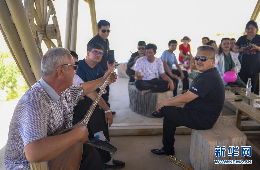 游客在罗布人村寨游玩(6月19日摄)。新华社记者 赵戈 摄