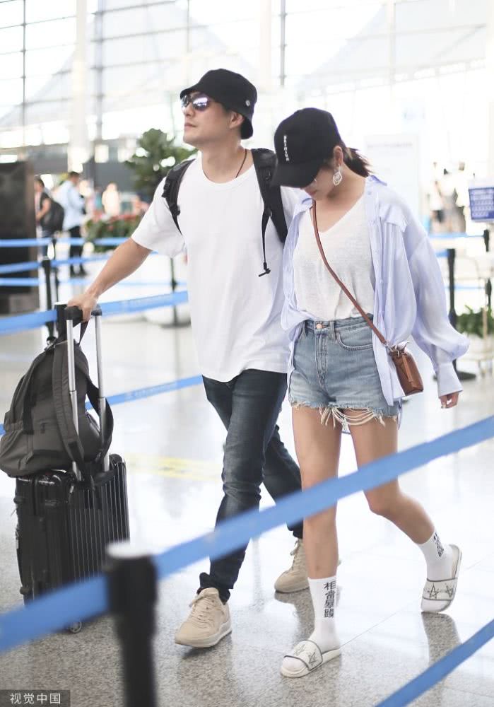 2019年8月19日,长沙,严屹宽、杜若溪夫妇现身机场。办完登机手续后严屹宽主动拎过所有行李,妥妥的模范老公,而美美的杜若溪素颜亮相,大玩下衣失踪秀美腿,袜子上的“相当暴躁”有点意思!